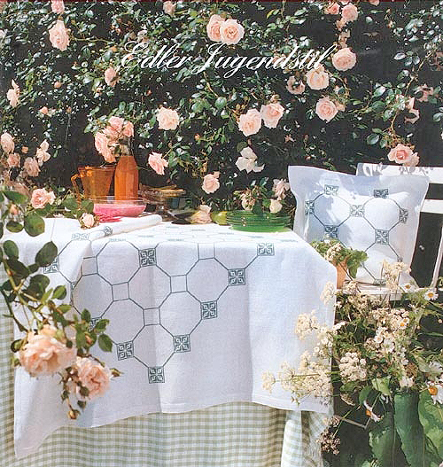 Kissen, ca. 45 x 45 cm, 1 Farbe, Leinen weiss, 5 Kreuze/1 cm, Kreuzstich