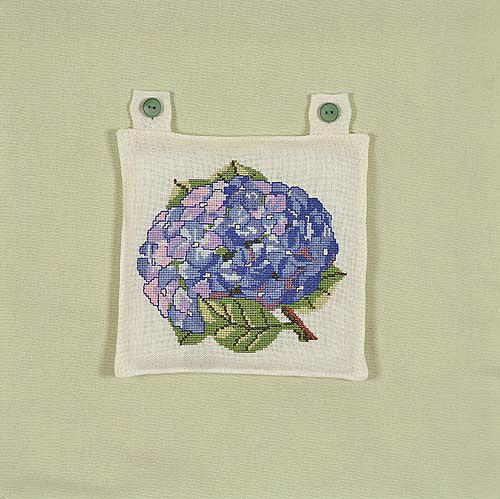 (ohne Knöpfe), Gestick ca. 14 x 13 cm, 12 Farben, Leinen, creme, 6 Kreuze/1 cm, Kreuzstich mit Holbeinstich