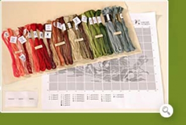In the Stickset includes: fabric, yarn and stitch pattern and a embroidery needle.