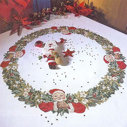 Tischdecke (ungesäumt), ca. 110 x 110 cm, 18 Farben, Baumwoll-Mischgewebe, pflegeleicht, weiss, 5 1/2 Kreuze/1 cm, Kreuzstich